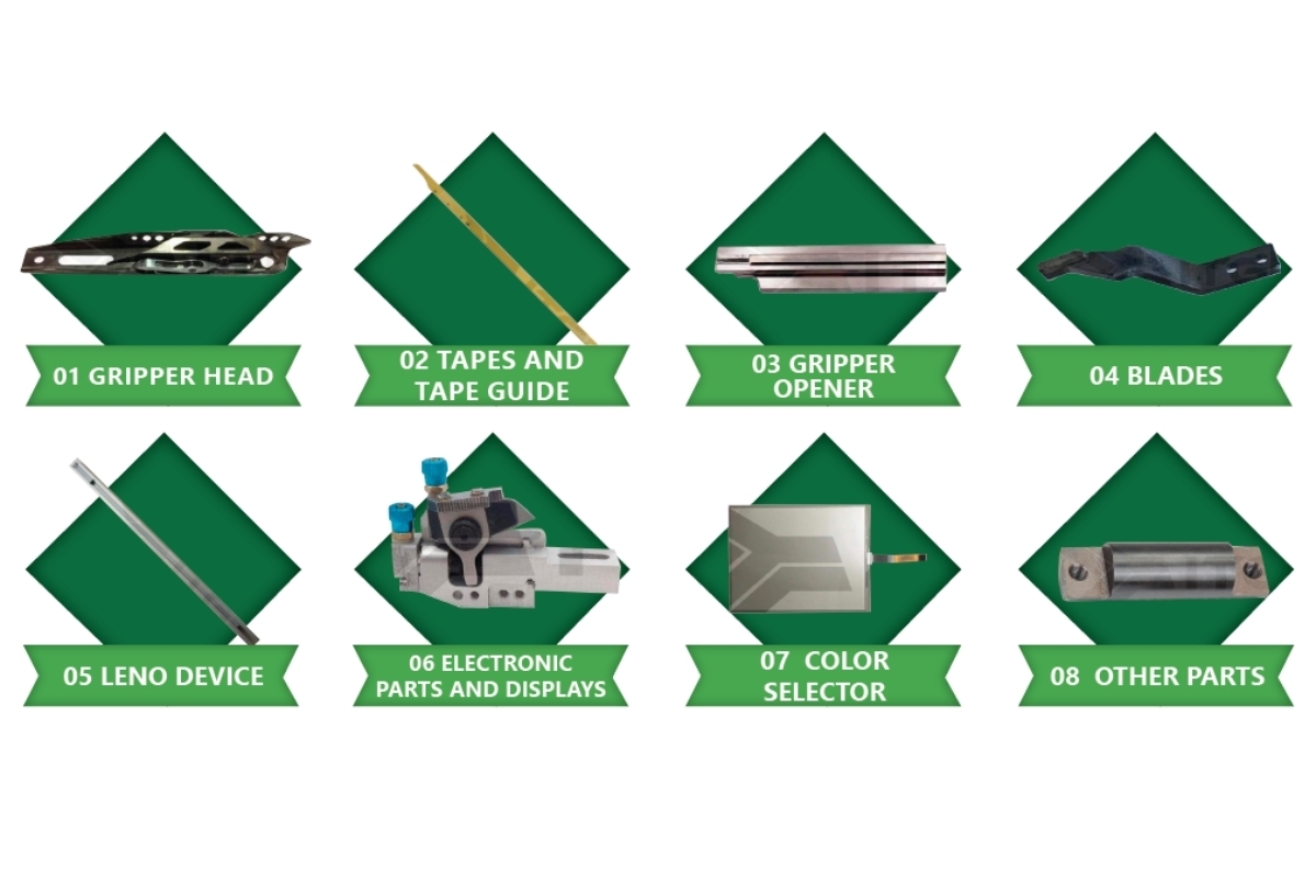 Bao gồm: vòi phun khí, bộ lọc khí, thanh dẫn, cảm biến, bộ tiếp sợi… Phụ tùng ITG cho máy dệt khí được thiết kế chống mài mòn và chịu áp suất lớn, vận hành ổn định ở tốc độ cao.